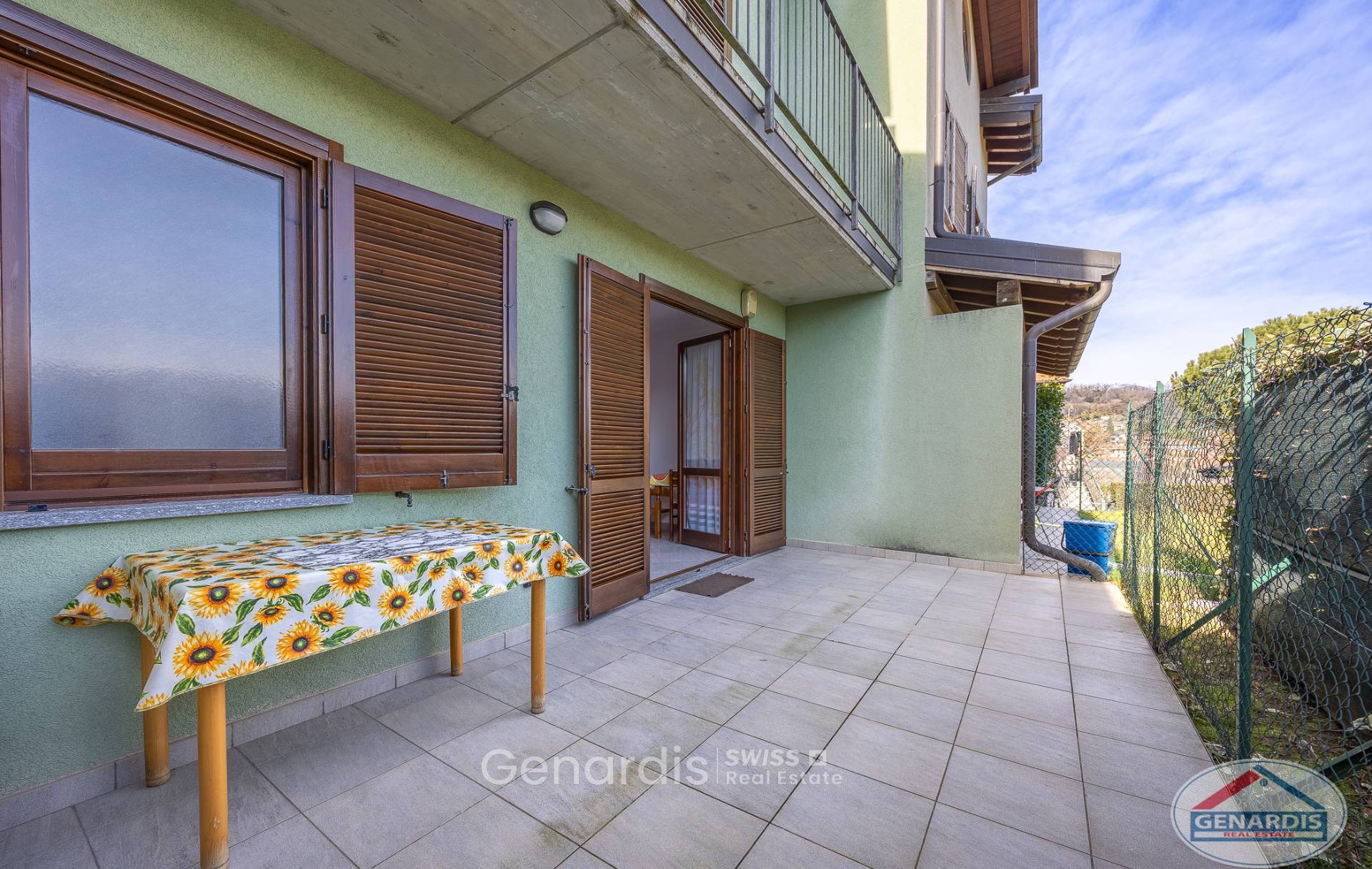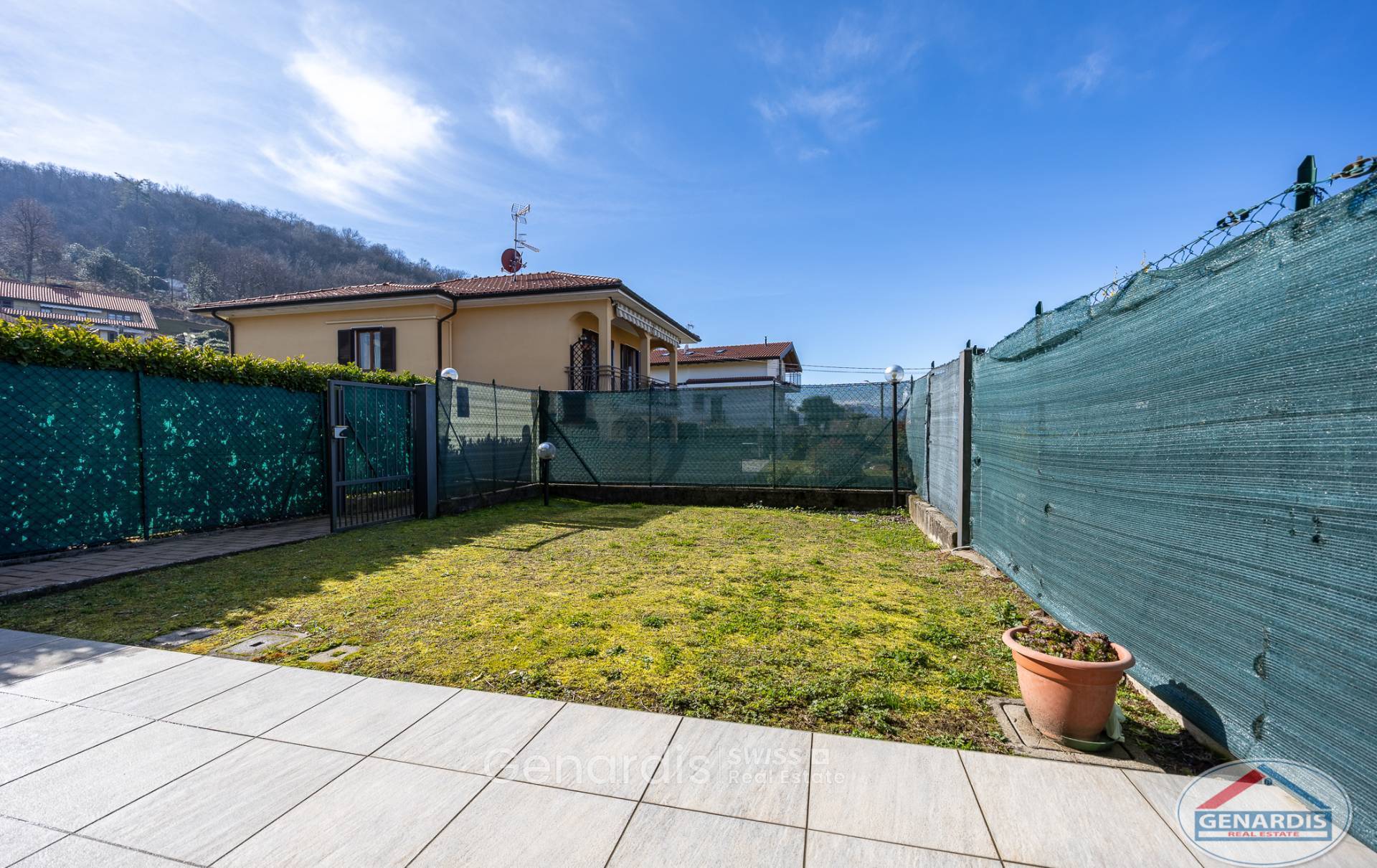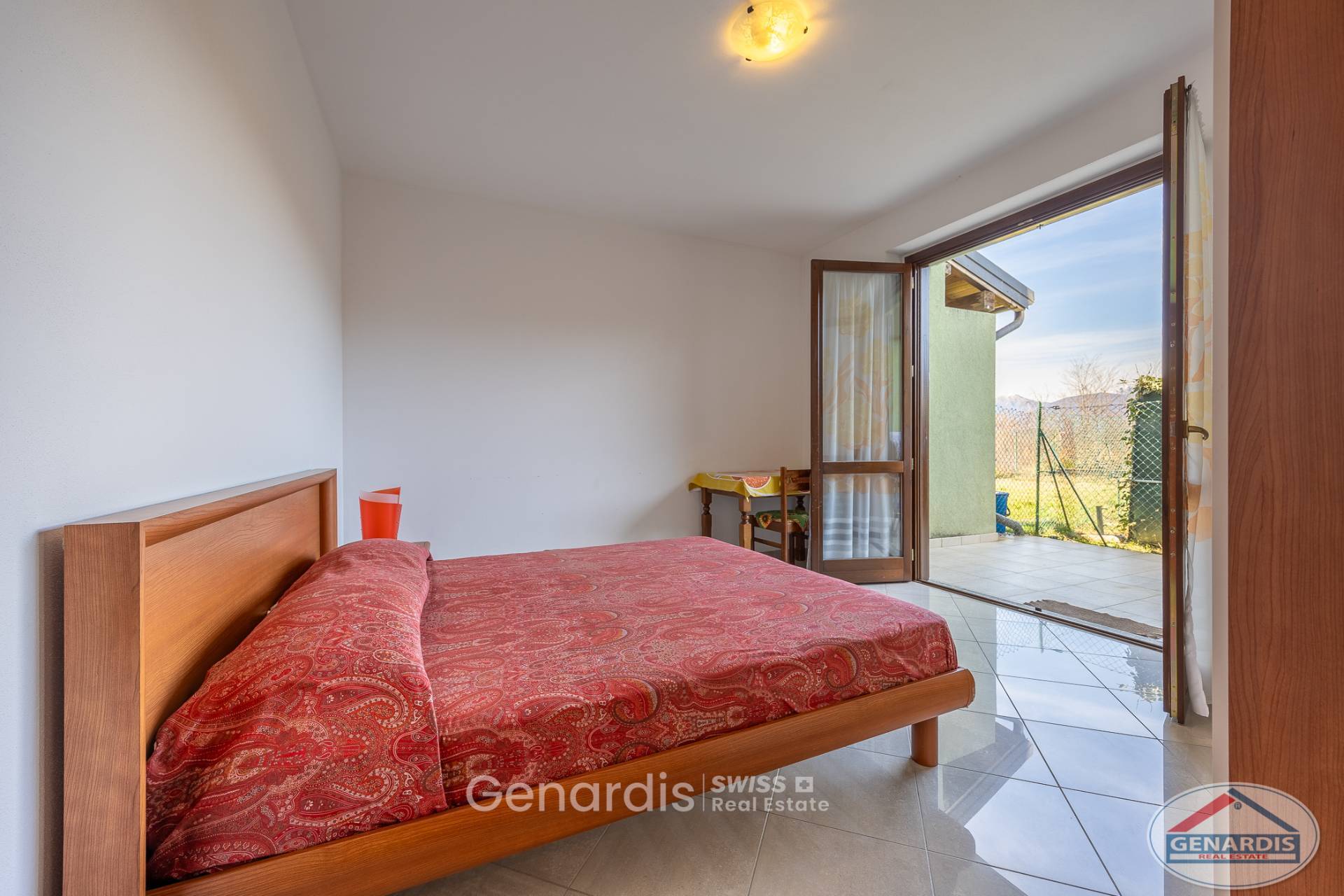 In zona residenziale, in grazioso residence, appartamento al piano terra in villette di soli due piani con ingresso indipendente. Composto da: ingresso, soggiorno con angolo cottura con accesso direttamente al giardino privato, camera matrimoniale sempre con uscita su portico e giardino, cameretta-studio e bagno. Al piano interrato vi è una cantina e taverna, con possibilità di collegamento interno all'appartamento sovrastante. Completano la proprietà un box e un posto auto scoperto.