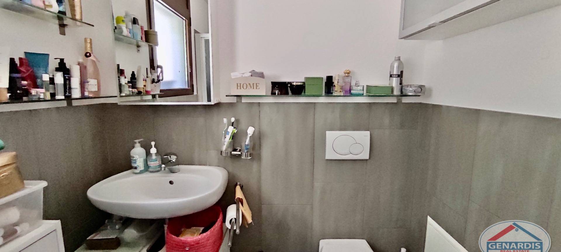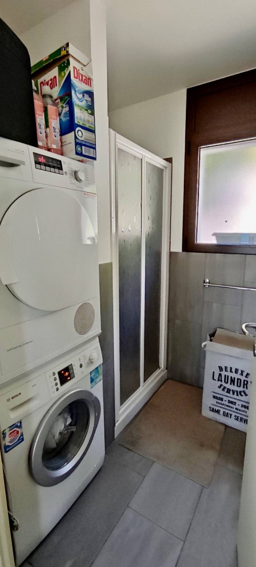 L'appartamento è costituito da due camere da letto di cui una con vista lago, luminoso salone/sala pranzo con vista lago, cucina separata con finestra, bagno con doccia, colonna lavasciuga, atrio d'entrata con armadi a muro. L'appartamento si vende completamente arredato oppure svuotato.