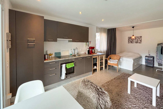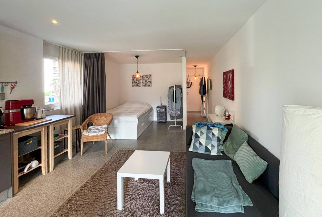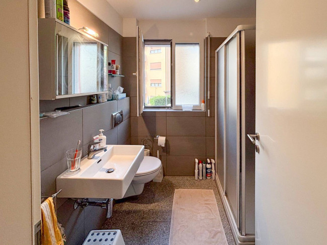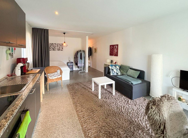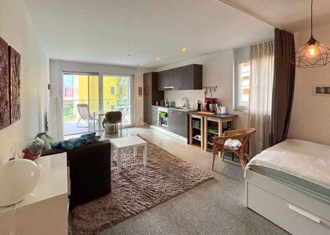 L'appartamento è moderno e funzionale, perfetto come pied-à-terre o residenza fissa per una persona. E' composto da un unico locale con un séparé per un letto matrimoniale, un corridoio d'entrata, una cucina moderna accessoriata, un bagno finestrato con doccia e colonna lavatrice -asciugatrice AEG ed un ampio terrazzo con vista parzialmente aperta. Inoltre sono state montate le zanzariere alle finestre e la porta d'entrata è blindata. L'appartamento è dotato di un sistema di riscaldamento/raffrescamento tramite pompa di calore.