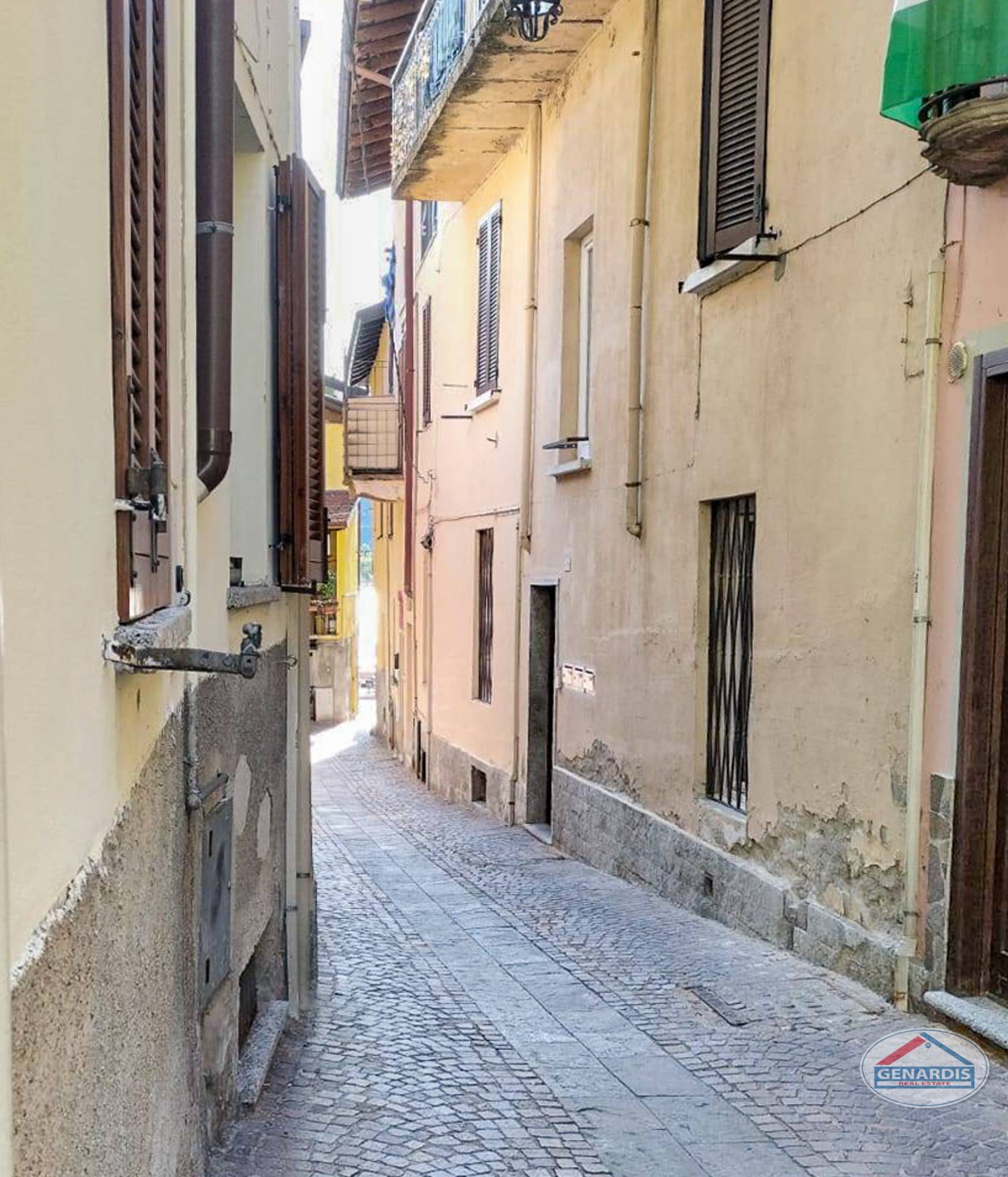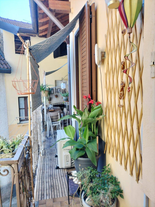In centralissima posizione, in caratteristica casa di cortile del centro paese, a due passi dal Lago, appartamento al piano primo ed ultimo, più sottotetto. Composto da: ingresso, soggiorno, cucina, balcone, cameretta, bagno con doccia, camera soppalcata con vano guardaroba, locale lavanderia, stireria e caldaia nel sottotetto. L'appartamento è stato completamente ristrutturato, serramenti tripla camera in PVC, con zanzariere e persiane in legno. Riscaldamento autonomo a metano. Climatizzatori.