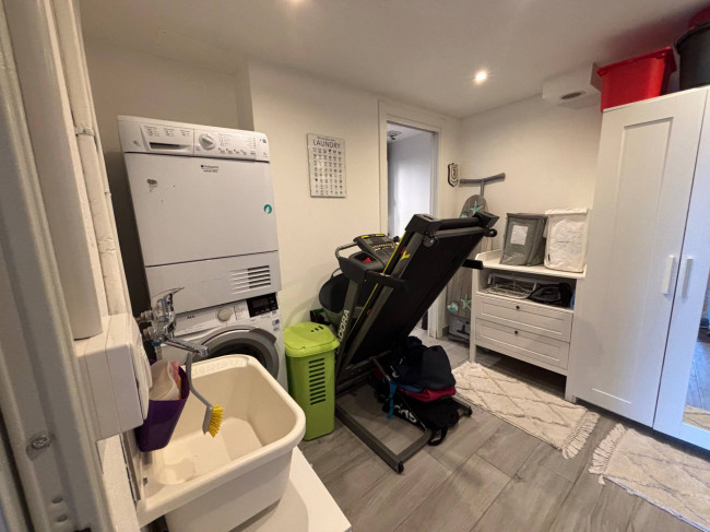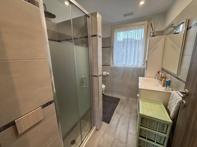 L'appartamento è dotato di un impianto di domotica regolabile a distanza, un impianto di allarme visibile da remoto, un sistema di raffrescamento/riscaldamento tramite geotermica. Dal soggiorno si scende direttamente in lavanderia privata con bagno doccia annesso per più comodità e comfort, e all'autorimessa dove ci stanno comodamente due automobili.