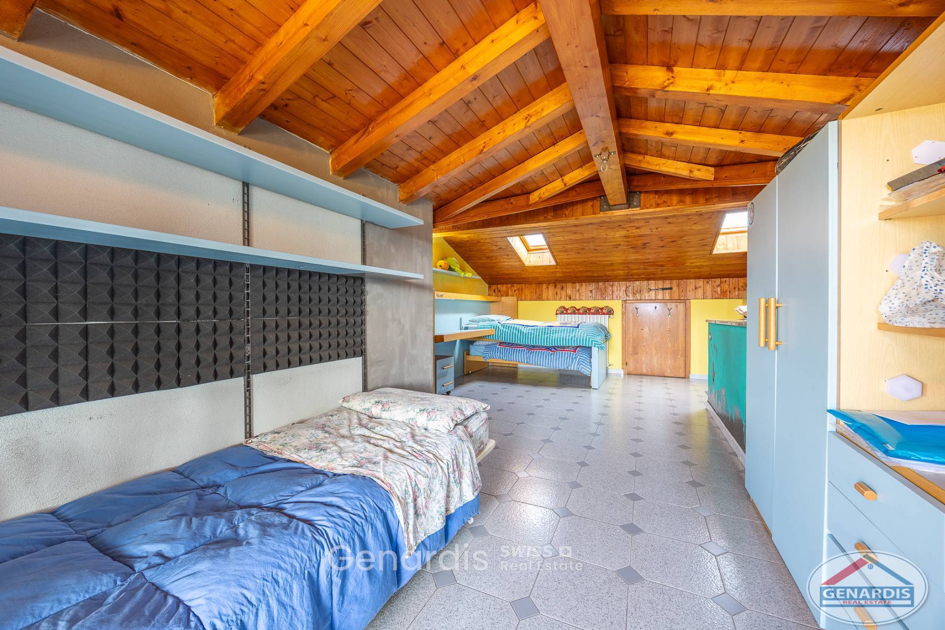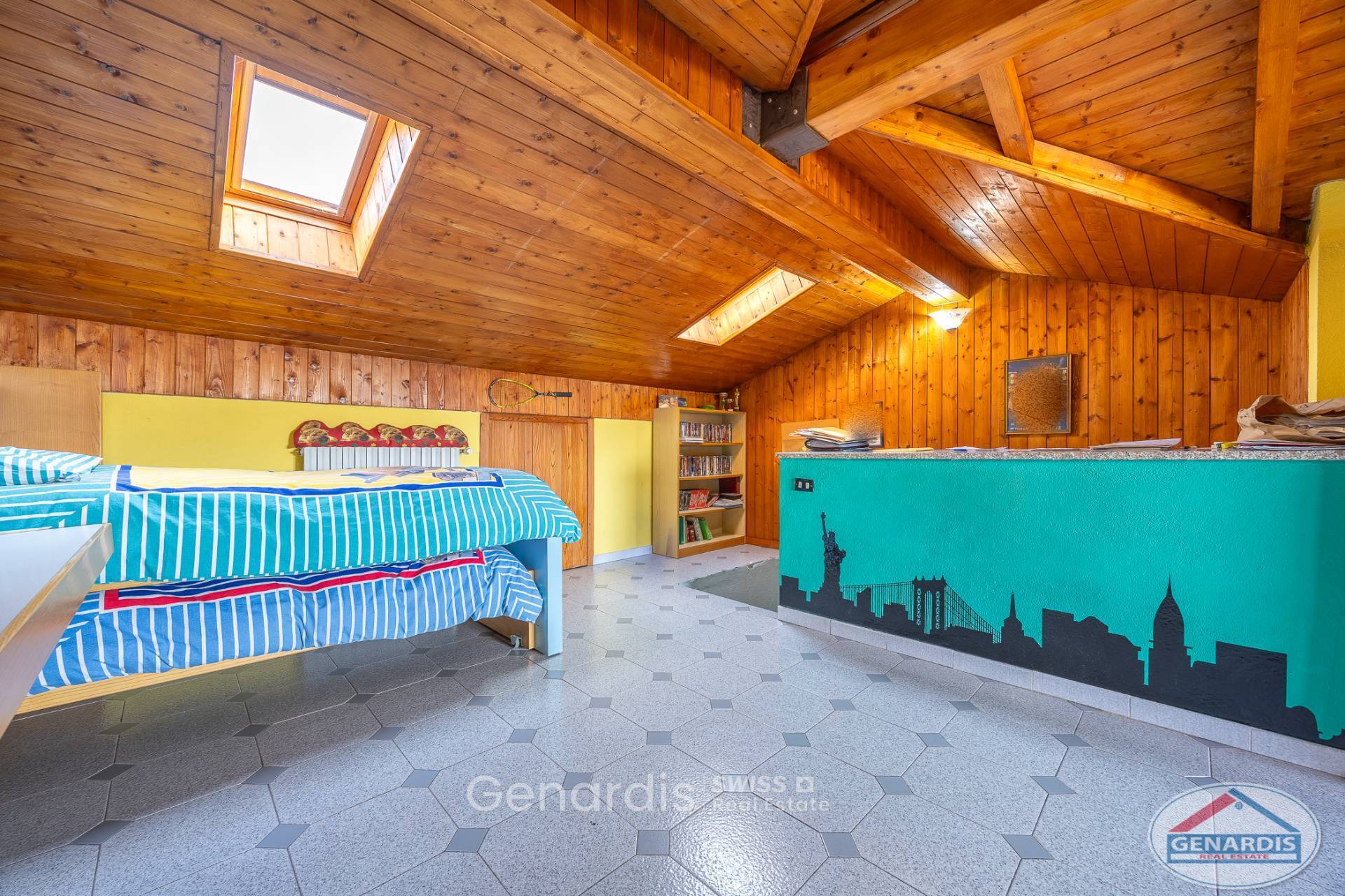 Primo piano: 2 ampie camere, bagno con vasca e terrazzino, scala interna che collega un'ampia mansarda godibile ad uso camera e locale hobby.