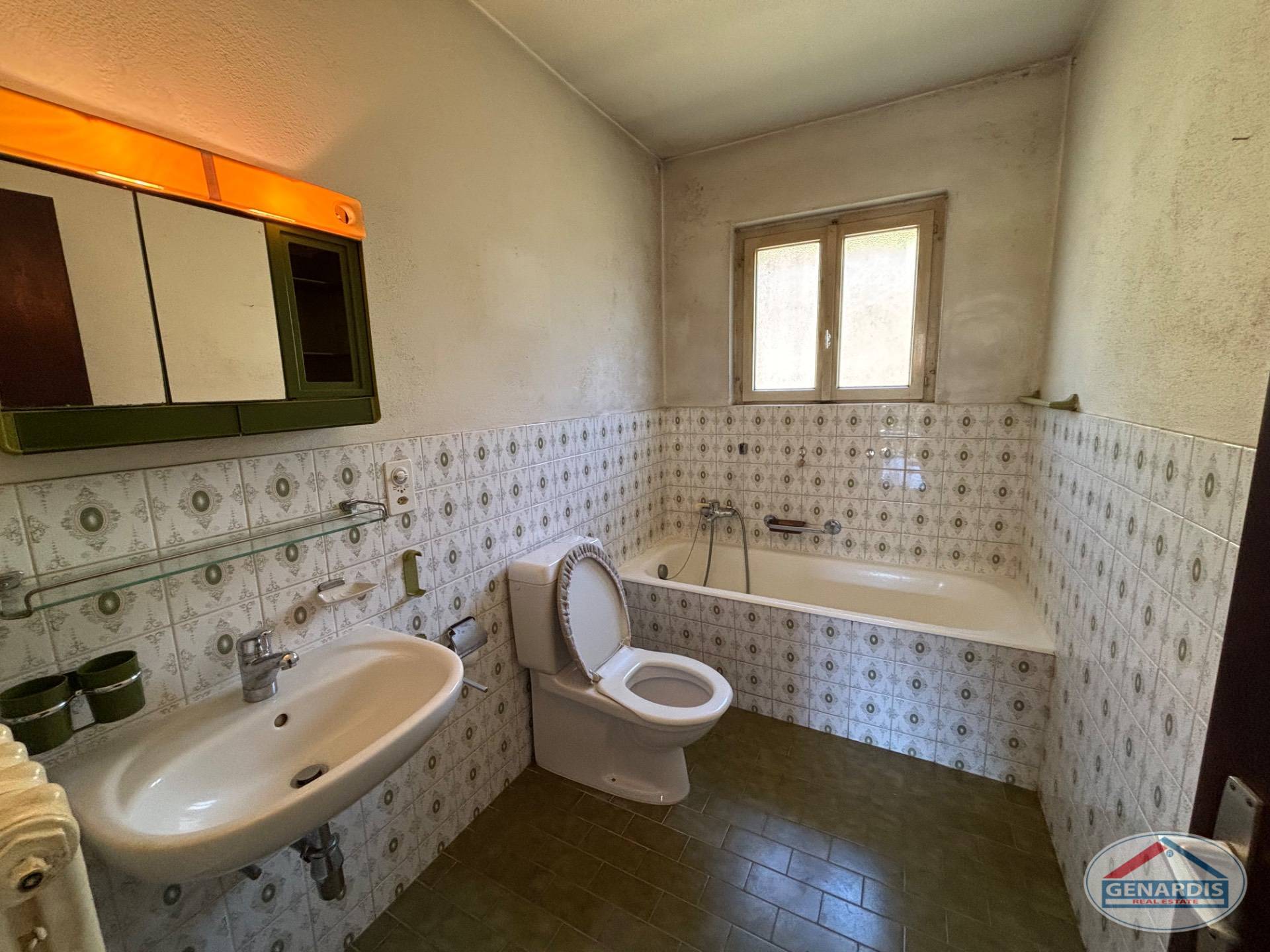 La villa è stata edificata nel 1983 e rispecchia i gusti di tale periodo; pertanto va rinnovata e ristrutturata. Di ampia metratura, circa 200 mq, è composta da un atrio d'entrata, un ampio soggiorno con sala annessa, una cucina separata che dà sul terrazzo dal quale si accede al rigoglioso giardino, una camera da letto con bagno padronale più altre due camere ed un bagno con doccia.