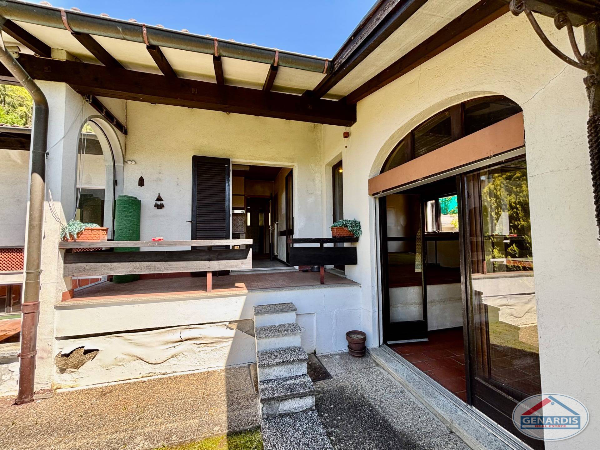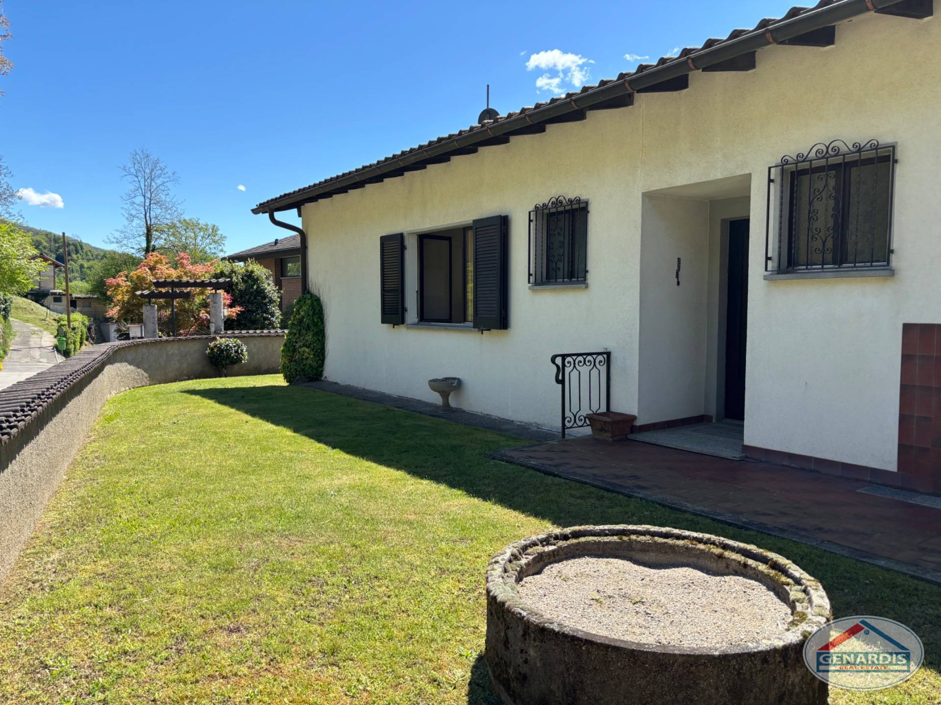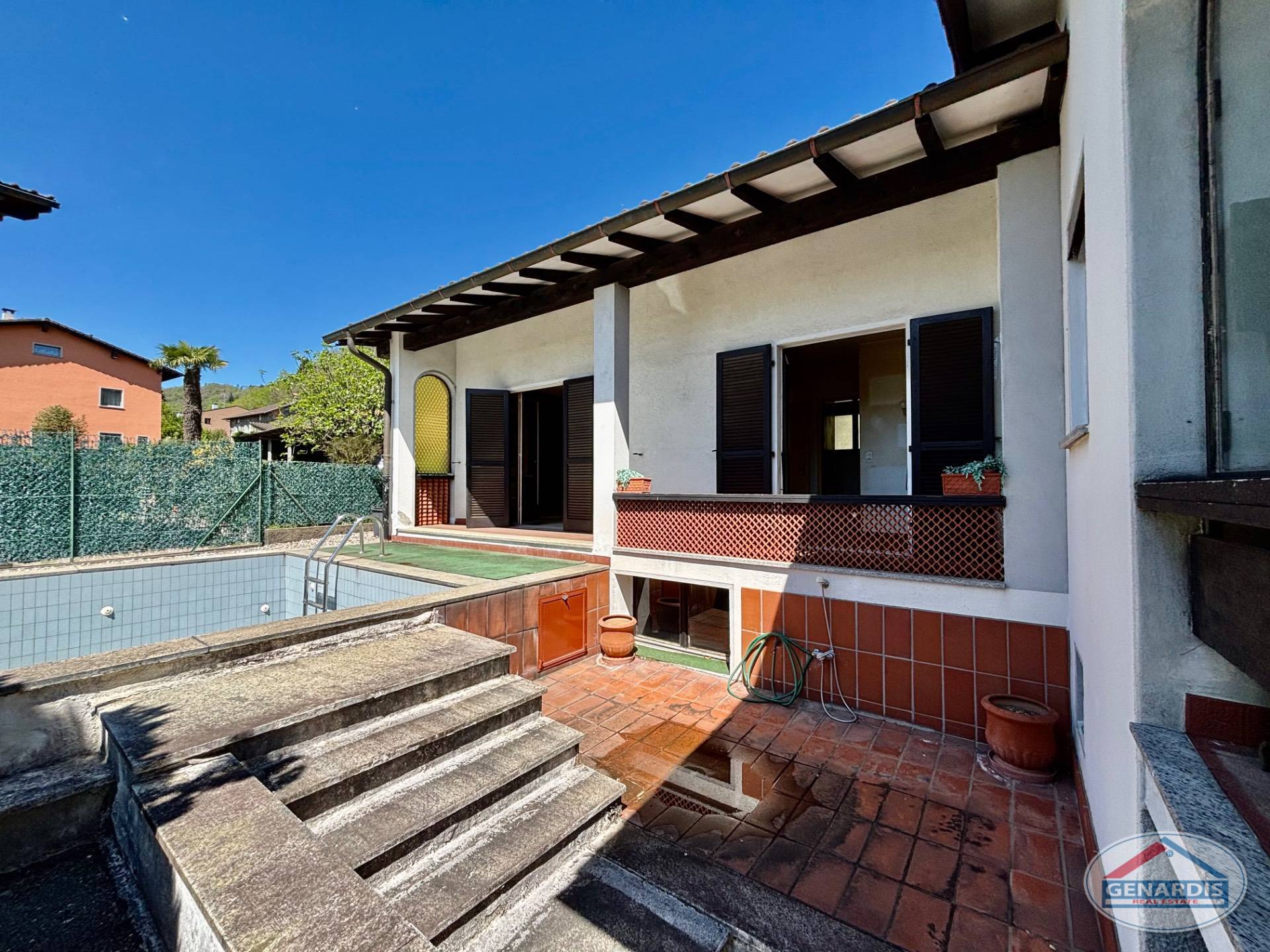 Nel bellissimo comune di Sessa (Tresa) in zona residenziale tranquilla e soleggiata, proponiamo una villa su un solo piano + interrato, con terrazzo, piscina e box doppio.