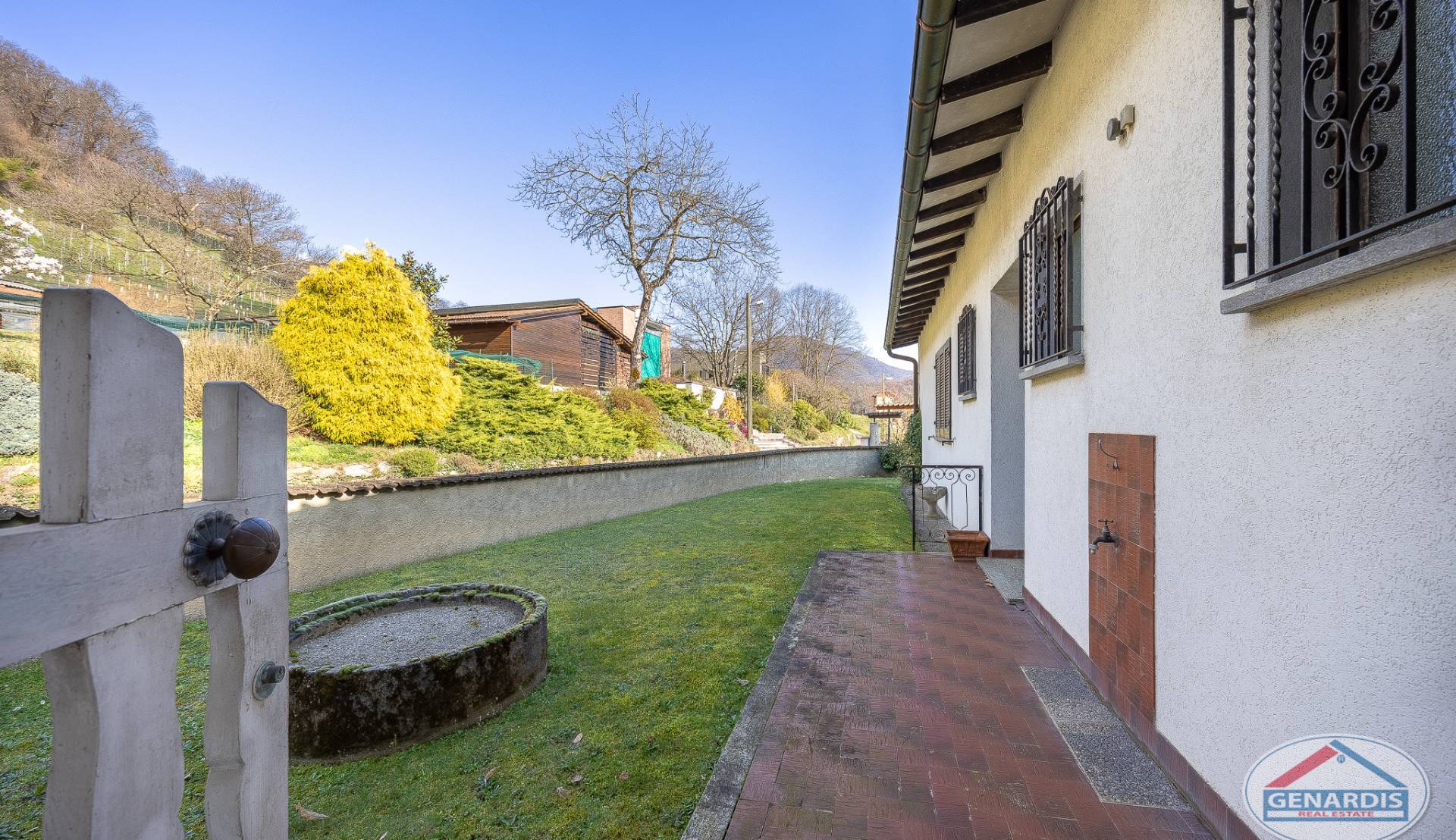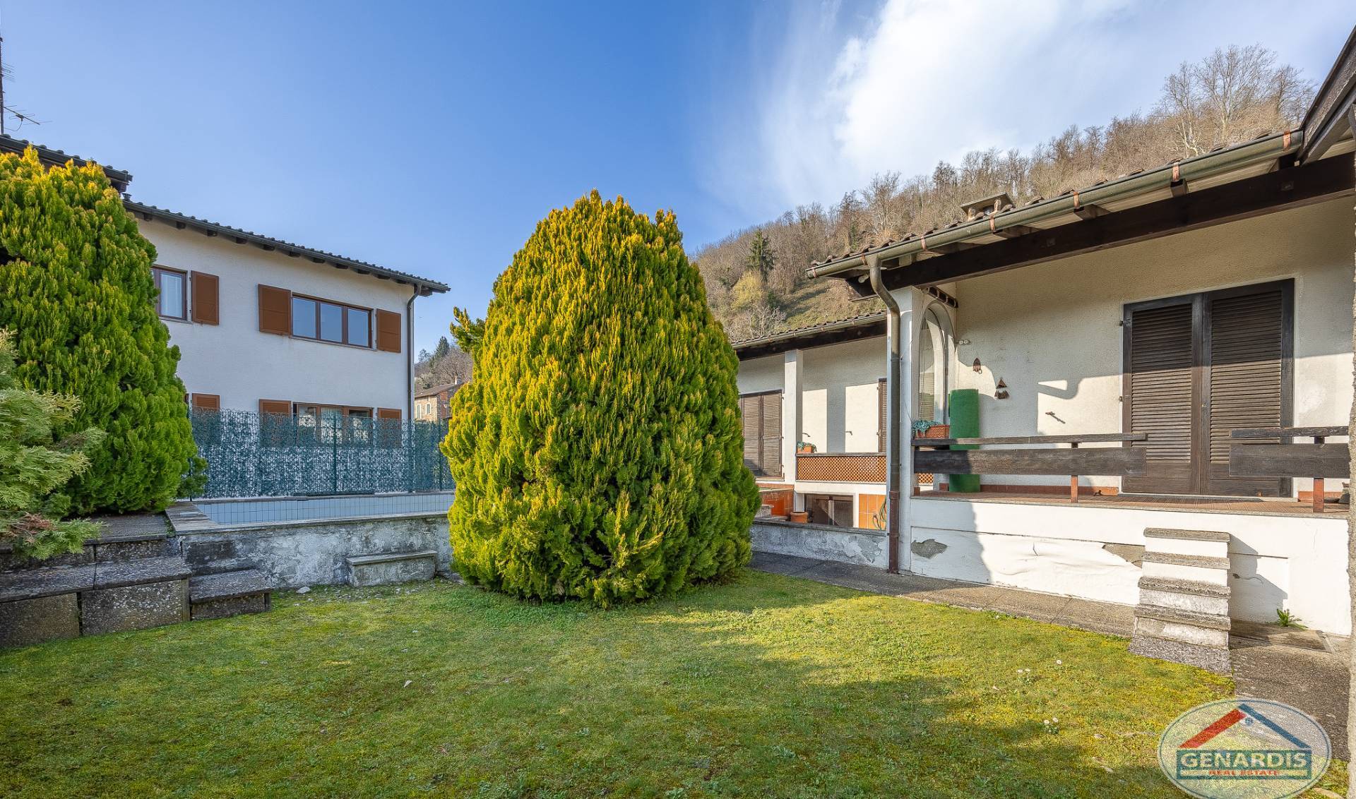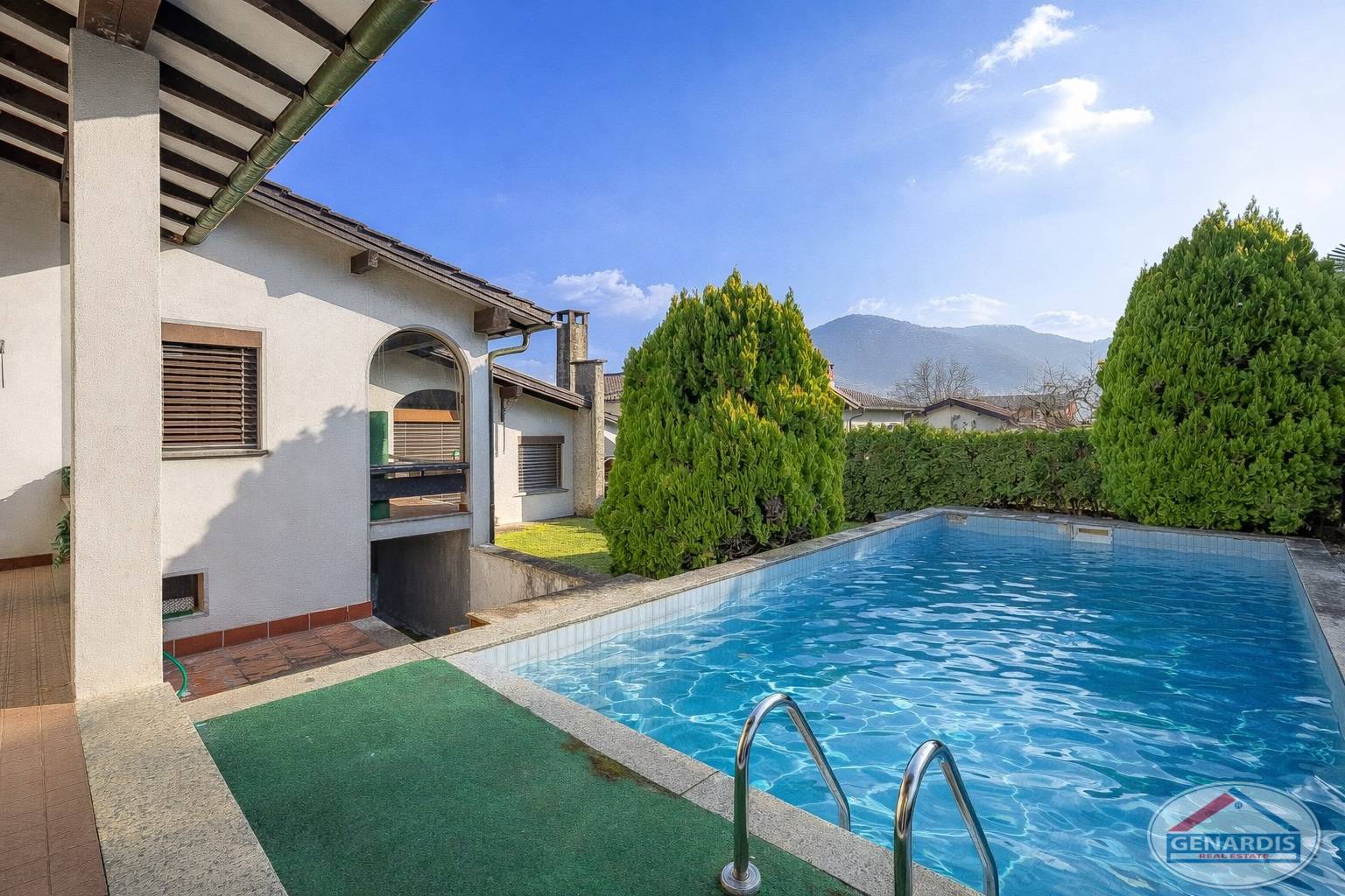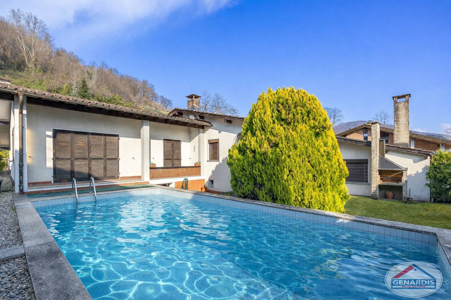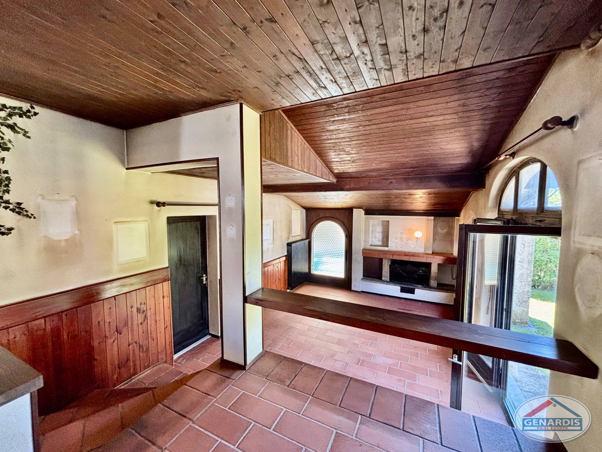 All'esterno un bel giardino pianeggiante circonda la villa, una piscina di medie dimensioni rinfresca d'estate, ed un box per due auto + un posteggio esterno completano il tutto.