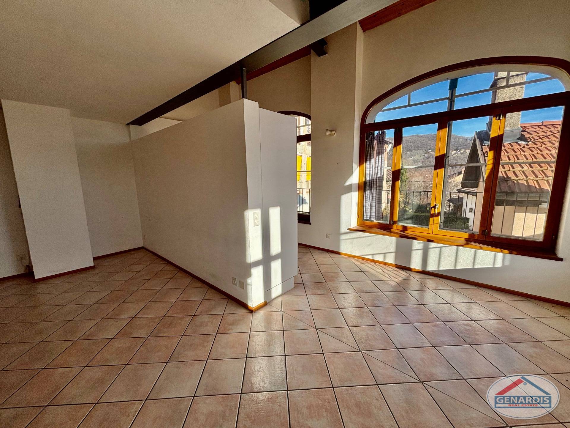 Il secondo appartamento è un duplex composto da una camera indipendente, un soggiorno / sala pranzo con camino, una cucina attrezzata dalla quale si gode di un bel panorama, mentre comode scale portano al piano superiore mansardato e luminoso, composto un soppalco che può essere utilizzato come ufficio, un'ampia camera da letto con armadi a muro ed un bagno con doccia.