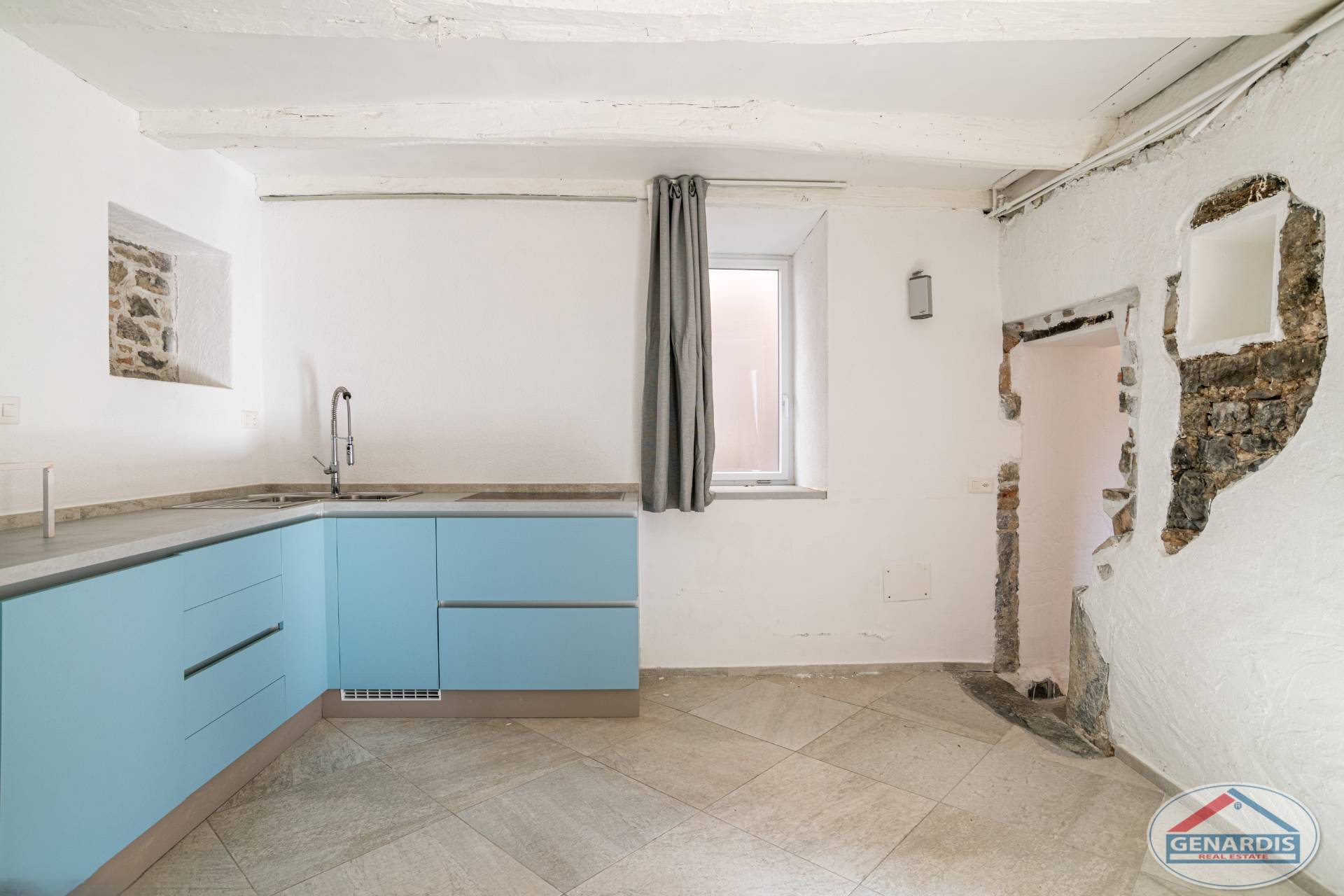 Piano terra ristrutturato e subito abitabile (ca. 40 mq): ingresso indipendente, soggiorno con angolo cottura, camera matrimoniale, bagno (ben rifinito). Stufa a pellet smart con gestione da remoto per comfort ed efficienza. Spazi accessori: balcone e tre solai/ripostigli. Lavanderia privata.