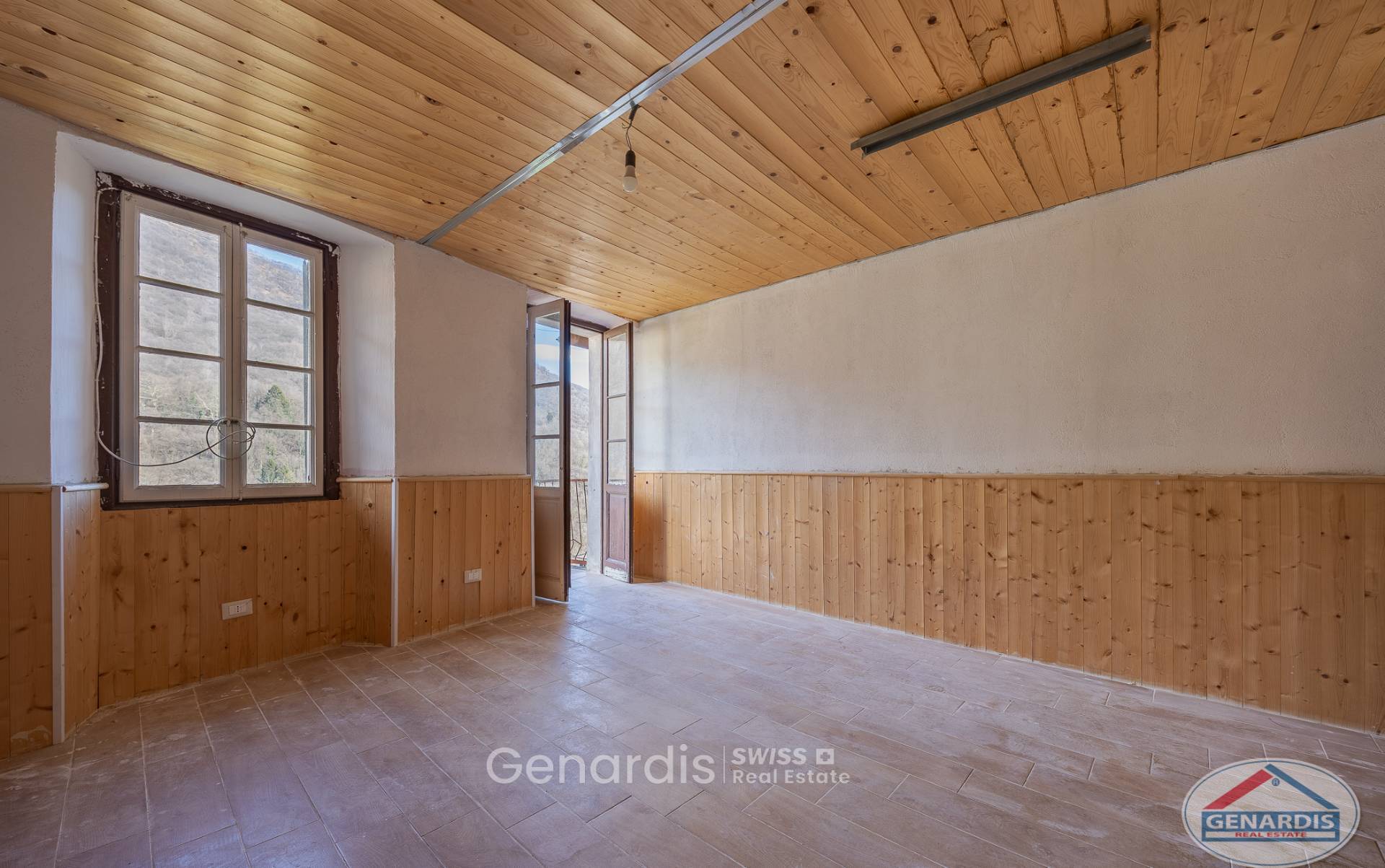 - Al secondo piano, vi è un altro appartamento in fase di ristrutturazione con la stessa disposizione di bilocale-ampio monolocale, con balcone con vista sulla Val Dumentina.
