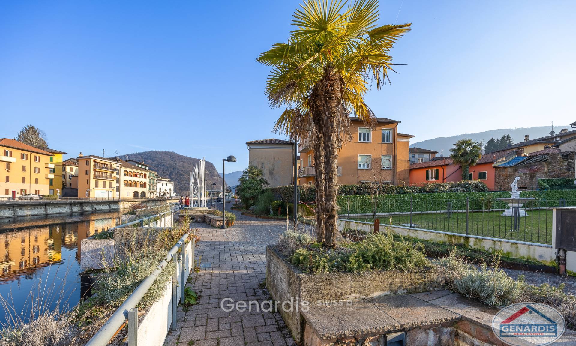 La proprietà è raggiungibile a piede e con la macchina sia dal centro storico del paese sia dal lungo fiume e si trova a pochi passi dalla frontiera di Ponte Tresa.