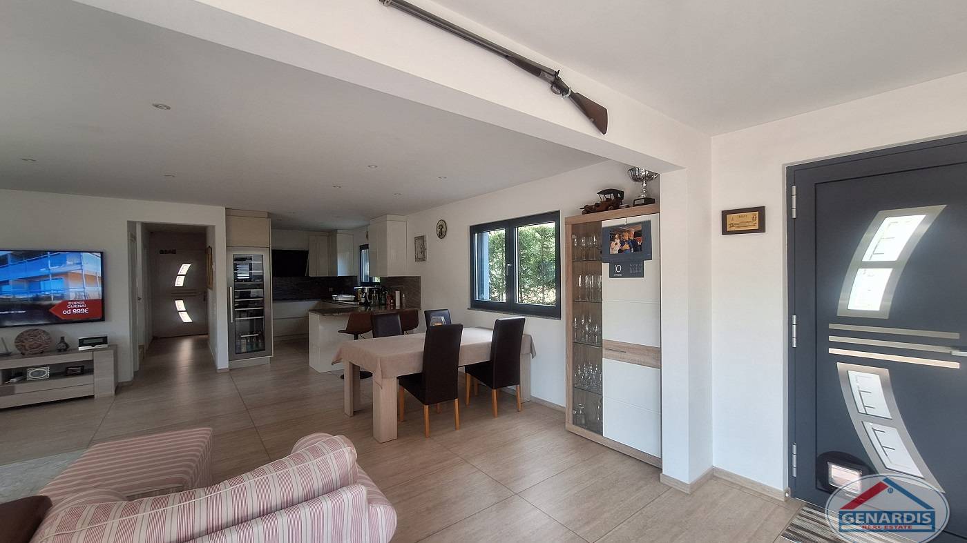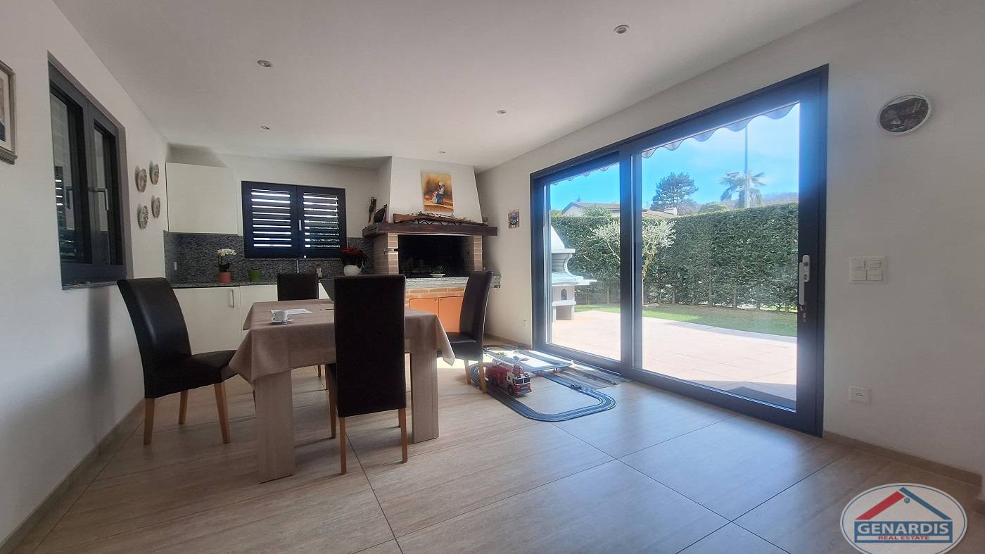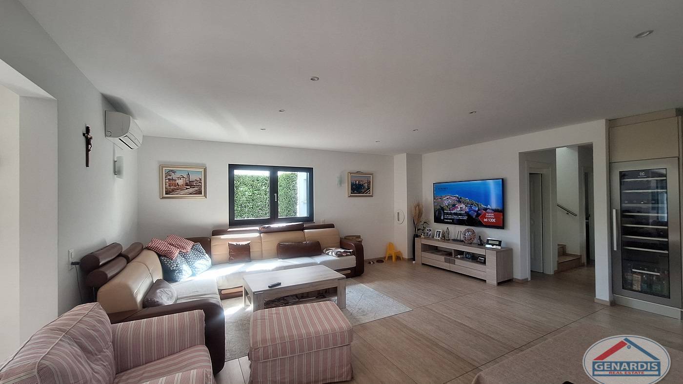 in posizione tranquilla, soleggiata, elegante Villa edificata nel 2017, con materiali di ottima qualità, ben curata, disposta su due piani, oltre al piano interrato, spaziosa luminosa, con grande soggiorno, pranzo con camino, sei camere, tre cucine arredate e accessoriate. Giardino pianeggiante con faretti di illuminazione, irrigazione automatica, angolo barbecue, locale attrezzi, box auto e quattro parcheggi auto.
